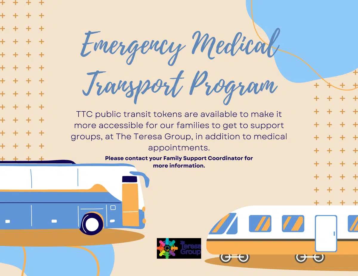 TTC public transit tokens are available to make it easier for our families to get to support groups at The Teresa Group, in addition to medical appointments.