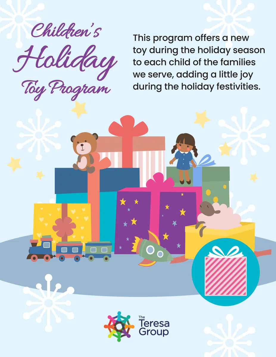 This program offers a new toy during the holiday festivities to each child of the families we serve.