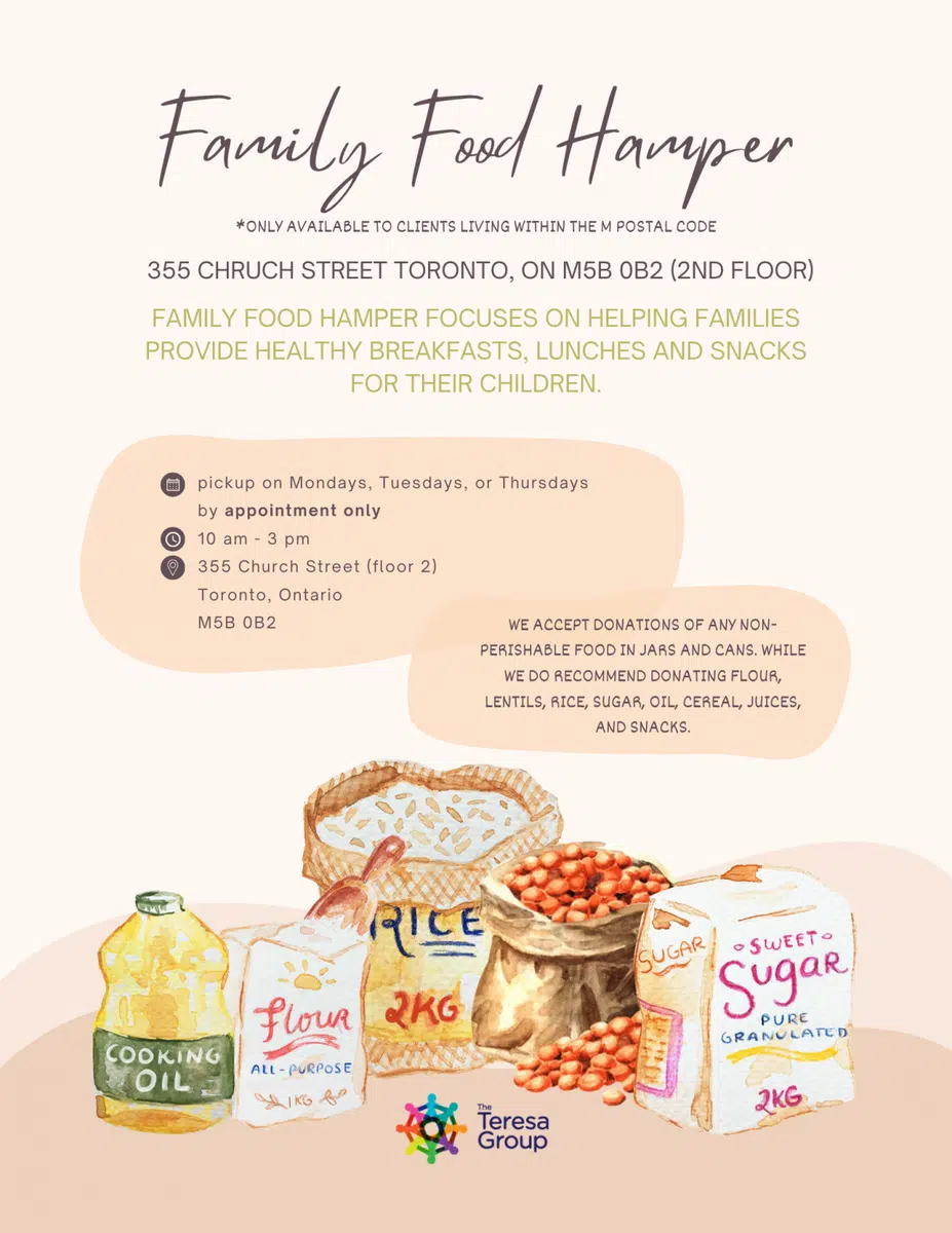 This program provides the families we serve with a holiday food hamper during the festive season.