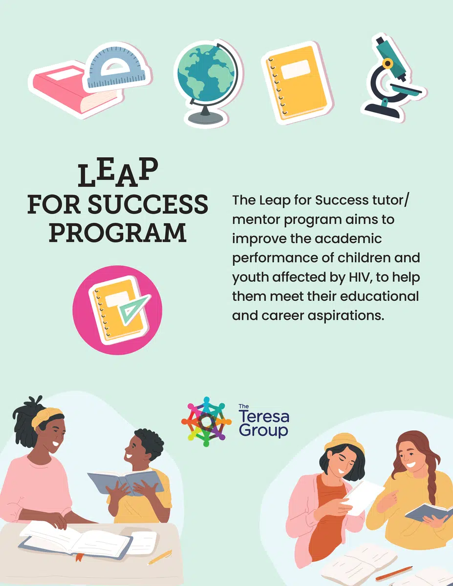 The Leap for Success tutor/mentor program aims to improve the academic performance of children and youth affected by HIV, to help them meet their educational and career aspirations.